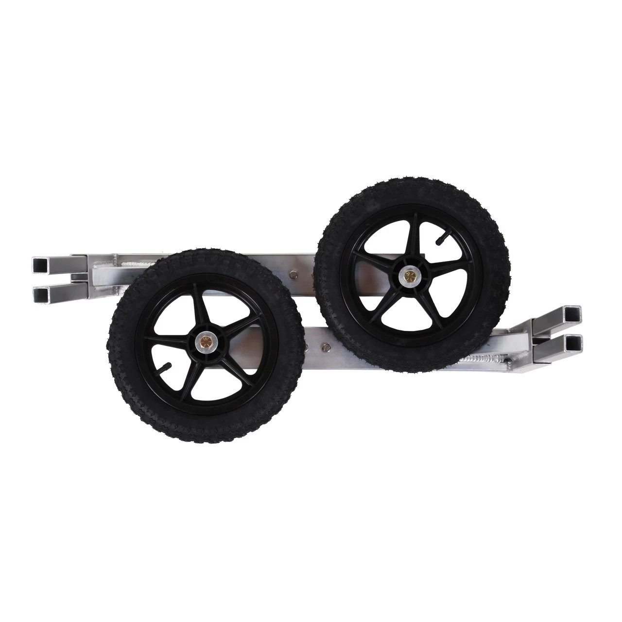 The 12″ Portage Wheels Complete Package from Spring Creek attaches easily to any canoe. Just insert the wheel frames into our Universal Receiver and you are ready to roll. Why carry that canoe when you can roll it! Made from lightweight aluminum. Then when you get to the water, it easily detaches for a quick take down! These 12″ Slip on portage wheels are best used on smoother paths. We recommend our 16″ Wheel Package for rougher terrain. Tires are inflatable. 12″ high and 2″ wide with spoked rims. Stabilize the wheels with a couple quick straps and you’re ready to go down the trail/portage!