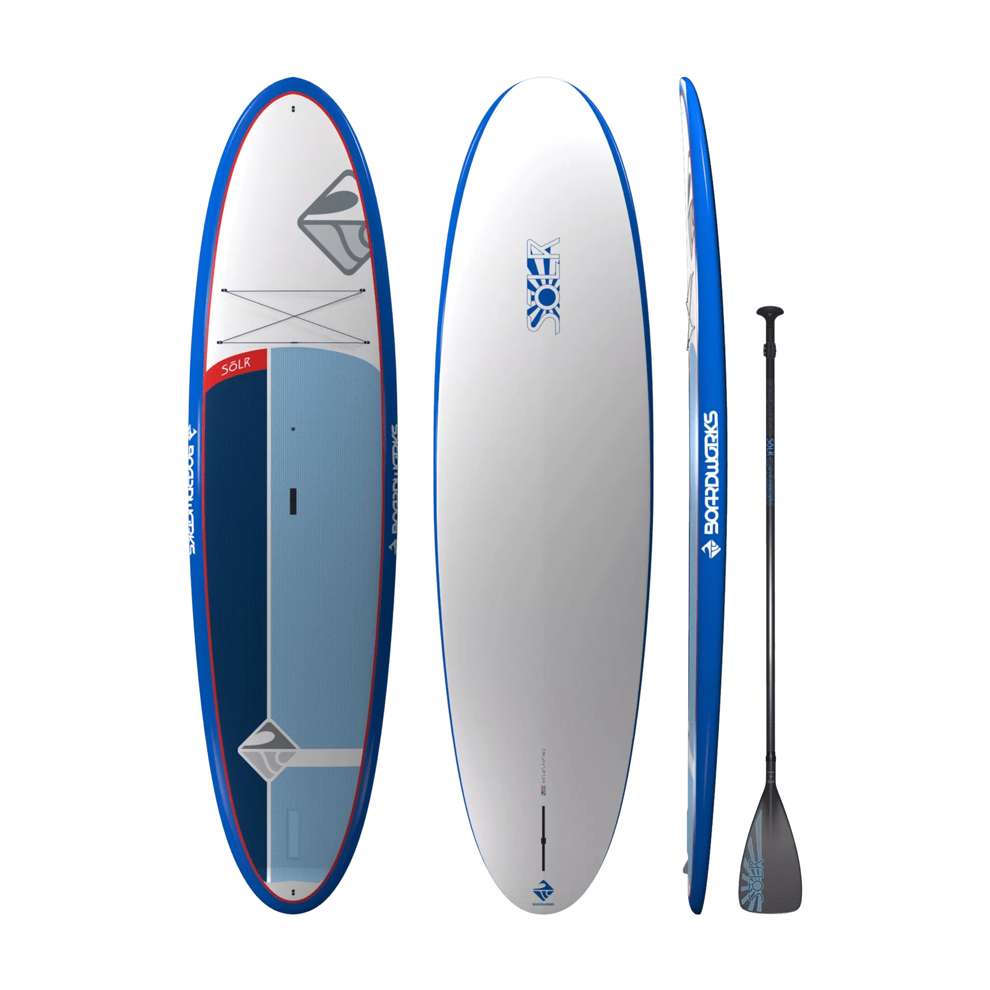 The Solr is the perfect hard paddle board for beginners who want to learn to paddle and explore the waters. Our ultra-comfortable honeycomb heat-embossed deck pad offers the highest level of traction without the usual water retention of brushed open foam traction pads. This SUP comes with one of our custom full carbon fiber 2-piece adjustable paddles, so you can immediately jump into the water.