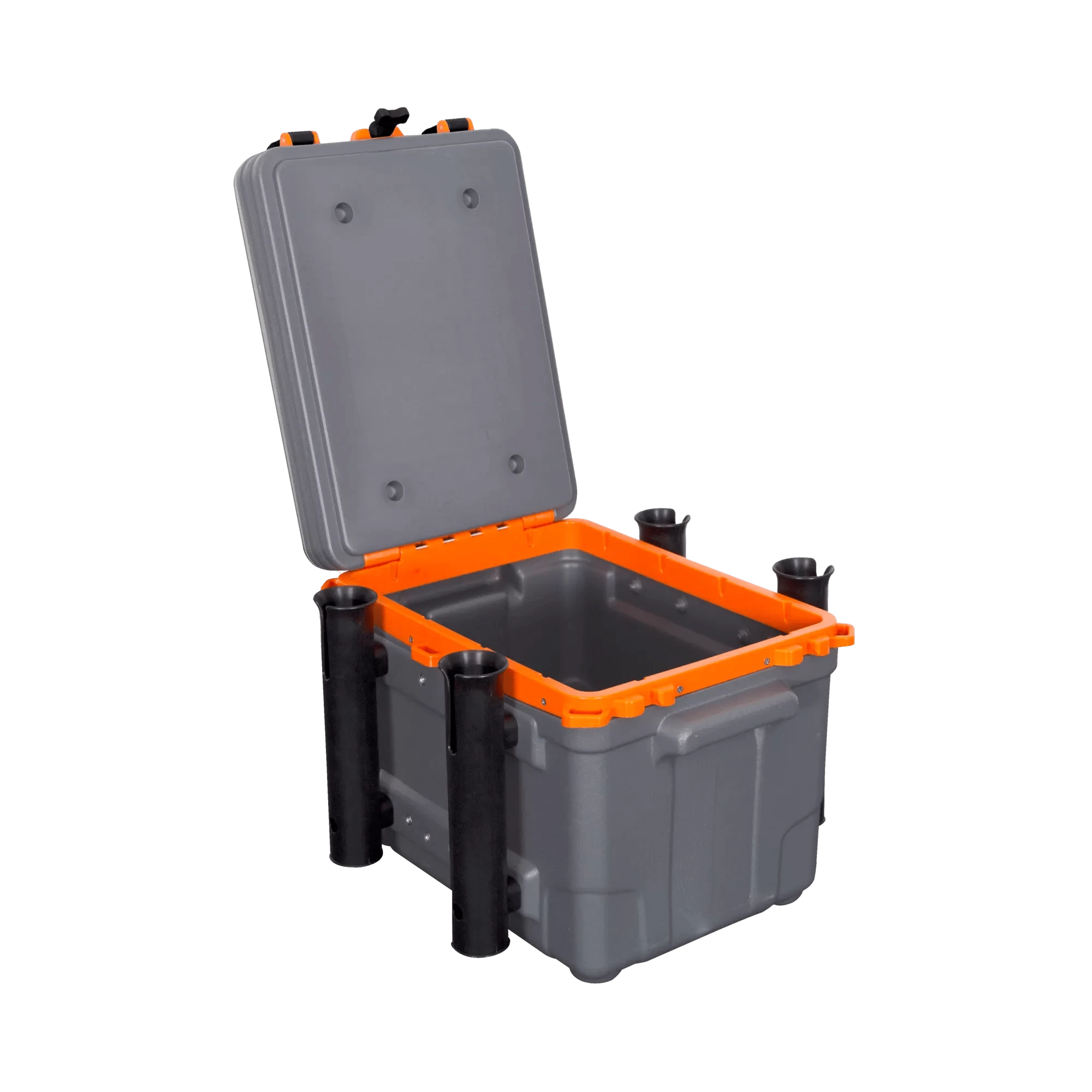 An open main compartment accommodates larger gear and tackle boxes, while smaller items can be stowed in the secondary lid storage. Functional and durable inside and out, the Kayak Krate is blow-molded, water resistant is easily lashed within a tankwell, and comes standard with four rod holders.